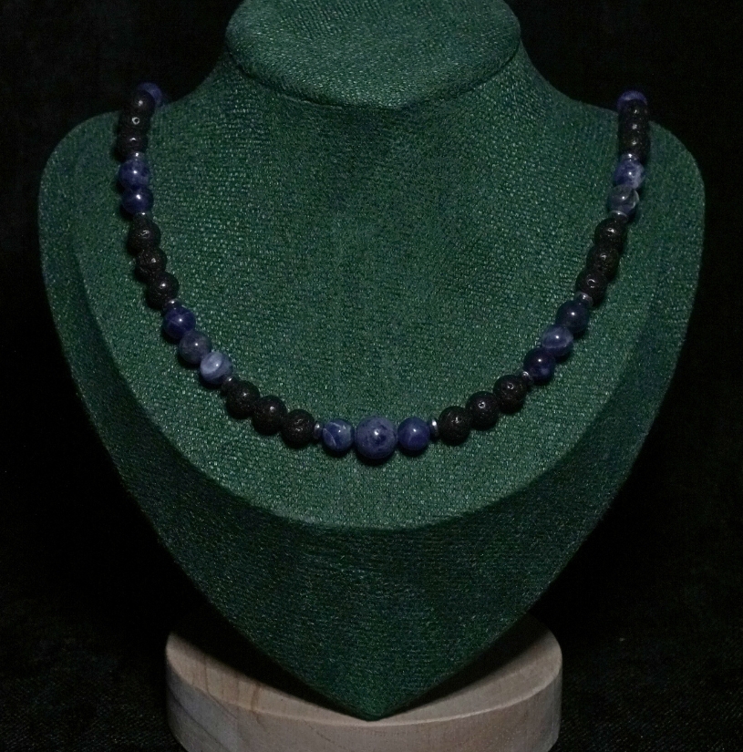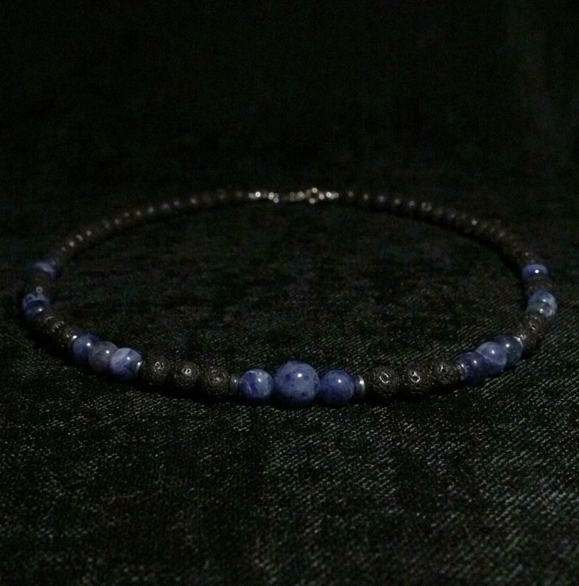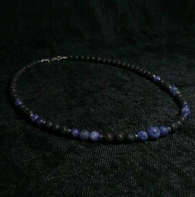 !Nowość Naszyjnik Lawa Wulkaniczna x Sodalit 6mm