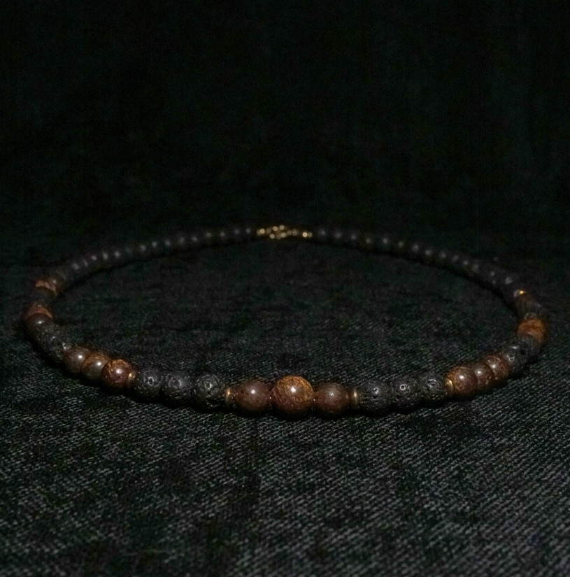 !Nowość Naszyjnik Lawa Wulkaniczna x Bronzyt 6mm