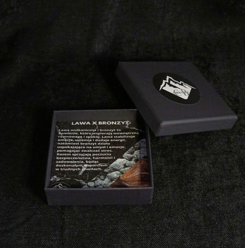 Lawa wulkaniczna i bronzyt to kamienie, które wspierają wewnętrzną równowagę i spokój. Lawa stabilizuje emocje, uziemia i dodaje energii, natomiast bronzyt działa uspokajająco na umysł i emocje, pomagając zwalczać stres. Razem sprzyjają poczuciu bezpieczeństwa, harmonii i zadowolenia, będąc doskonałym wsparciem w trudnych chwilach.