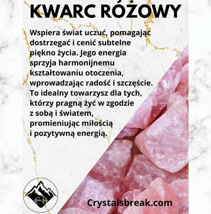 Kwarc Różowy jest kamieniem niezwykle korzystnym dla świata uczuć i odczuć. Wspiera miłość do naturalnego i subtelnego piękna, pomagając dostrzegać i cenić delikatne aspekty życia. Jego energia wspomaga harmonijne i piękne kształtowanie swojego otoczenia, wprowadzając do niego radość i szczęście. Kwarc Różowy jest doskonałym towarzyszem dla tych, którzy pragną żyć w zgodzie z sobą i otaczającym światem, promieniując miłością i pozytywną energią.Przygotowanie naszych rękodzieł do wysyłki zazwyczaj zajmuje od 1 do 2 dni roboczych. Jeśli wystąpi jakiekolwiek opóźnienie, zawsze staramy się poinformować Klienta drogą telefoniczną lub mailową. Czas dostawy zależy od wybranej formy dostawy i wynosi zazwyczaj od 1 do 4 dni roboczych na terenie Polski. Dostawy międzynarodowe mogą trwać dłużej, w zależności od kraju docelowego.