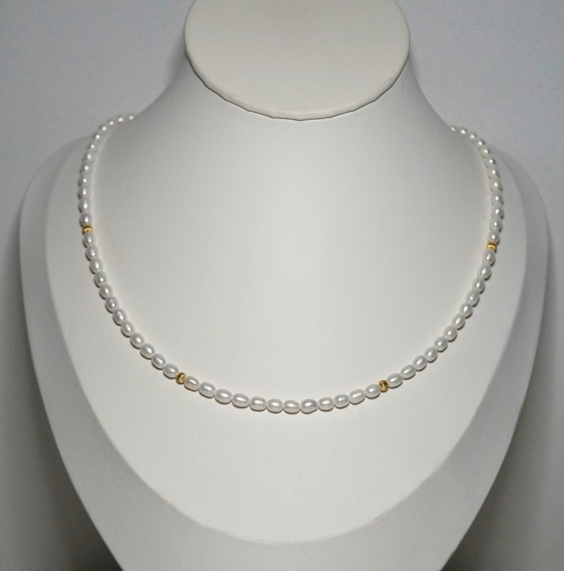 !Nowość Naszyjnik Szczęścia Perła Ryż 3mm